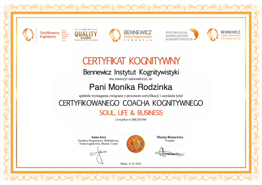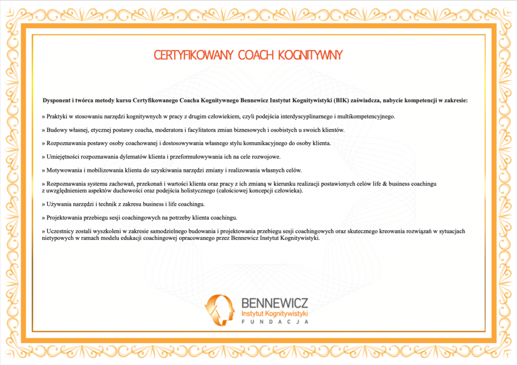 Zaawansowany kurs Coacha Kognitywnego – Instytut Kognitywistyki Bennewicz